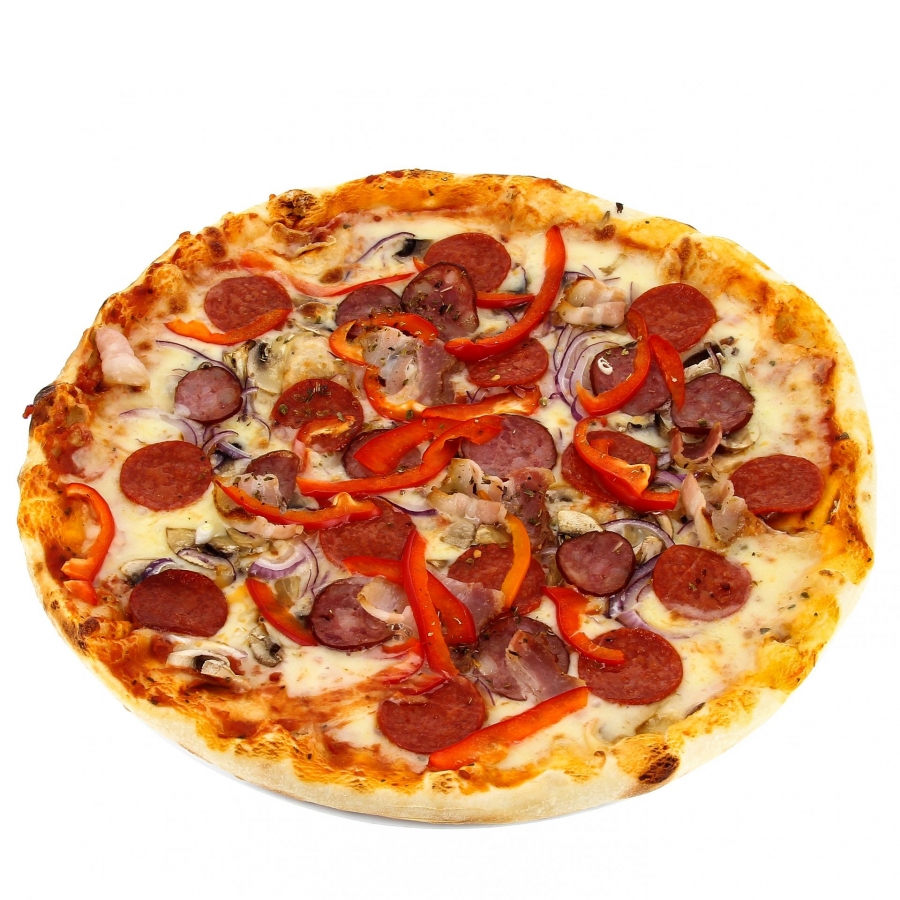 Пицца с копченой колбасой